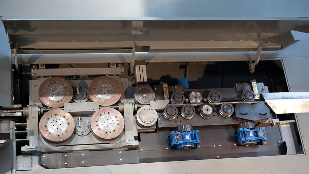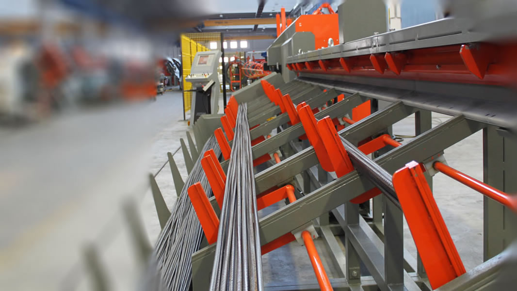 Enderezadora automática de rodillos para la producción de barras cortadas a medida hasta el Ø 20 mm.