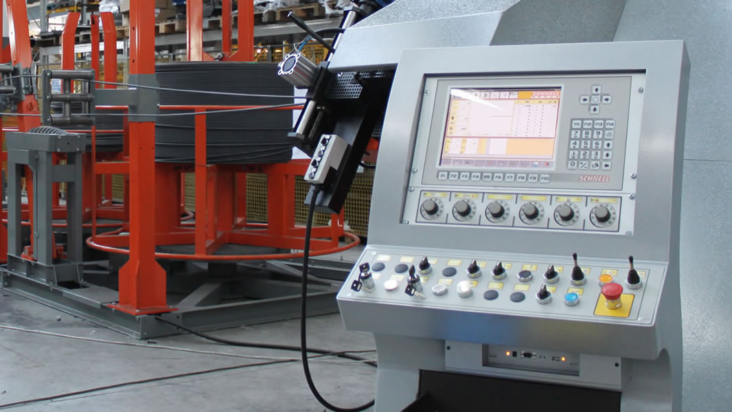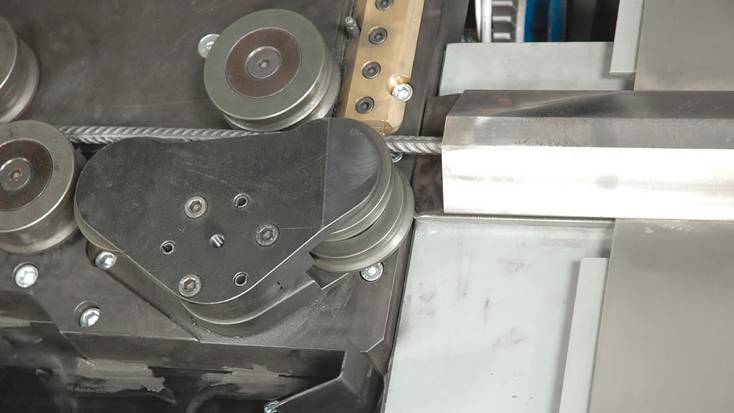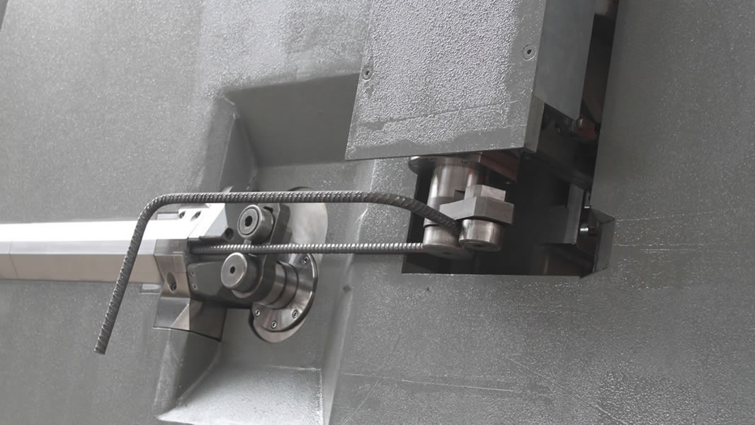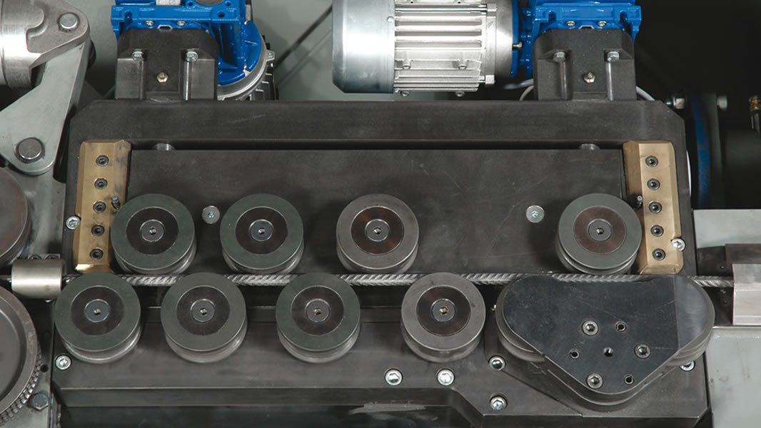 Estribadora automática bidireccional para la elaboración de hierro en rollos, que permite la realización de estribos y barras cortadas a medida utilizando hierro hasta el Ø 14 mm.