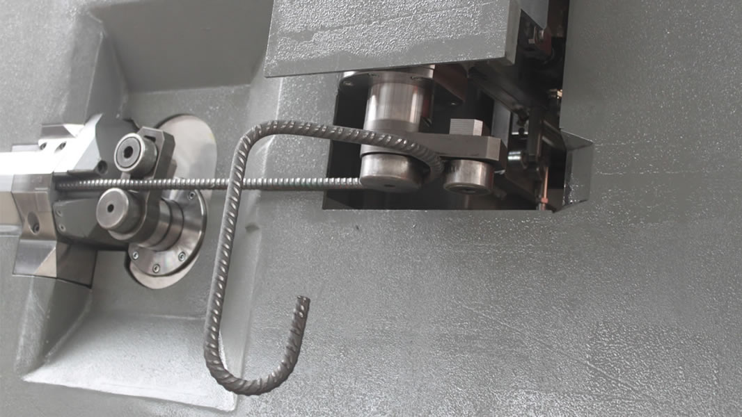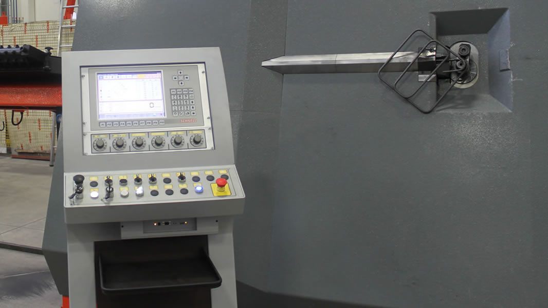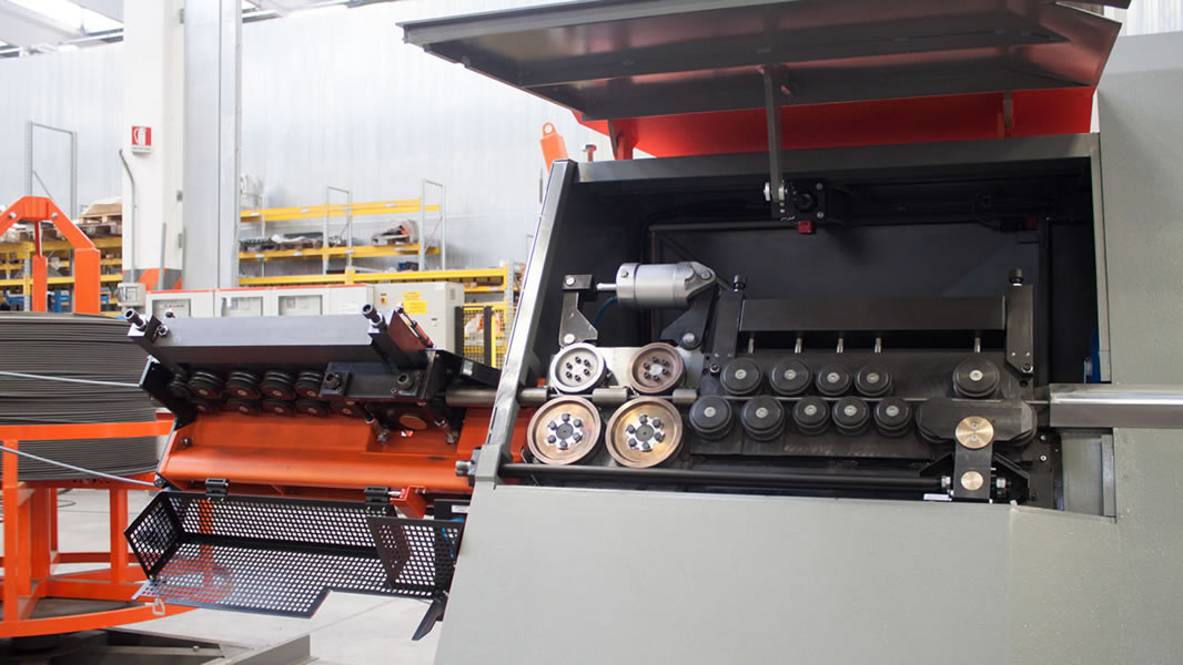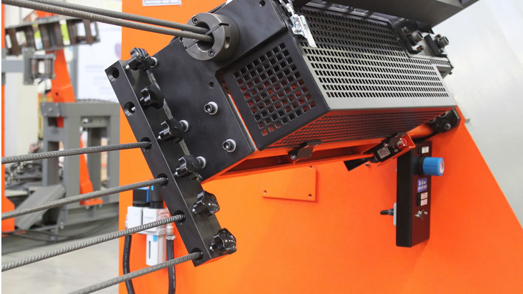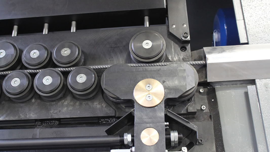 Estribadora automática bidireccional para la elaboración de hierro en rollos, que permite la realización de estribos y barras cortadas a medida utilizando hierro hasta el Ø 13 mm.
