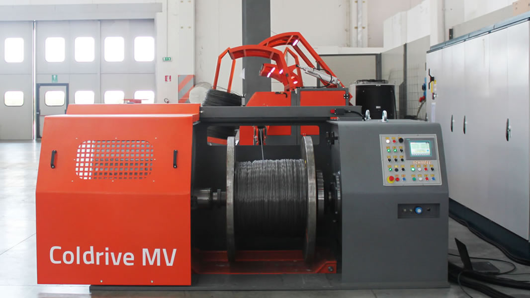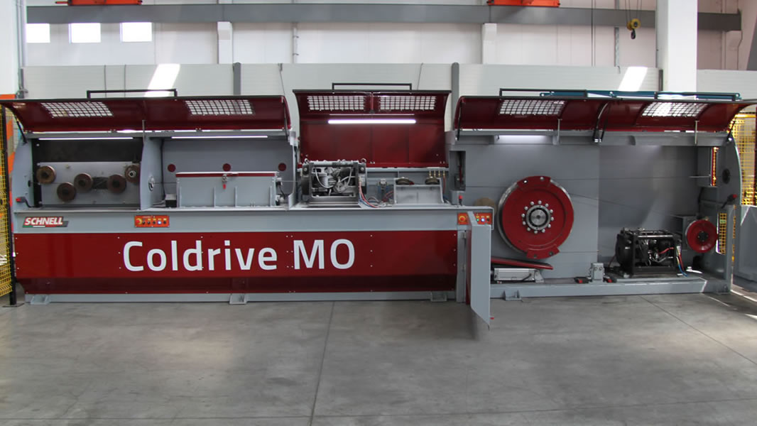 Coldrive MO es una línea de Laminación en Frío con cabrestante de tiro con bobina individual de eje horizontal para la producción de alambre liso y corrugado de Ø 4 mm a Ø 16 mm. Esta planta es completamente modular y el proceso de laminación en frío es realizado a través cabrestantes de tiro y de cassettes de laminación/trefilado. Accionamiento mediante servomotores eléctricos digitales.