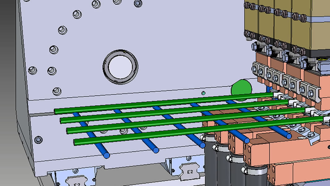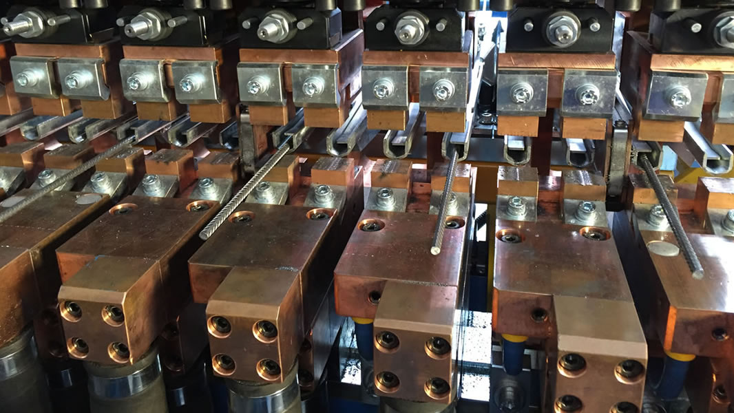 Las barras transversales provienen de una bobina y son inyectadas en el portal de soldadura.